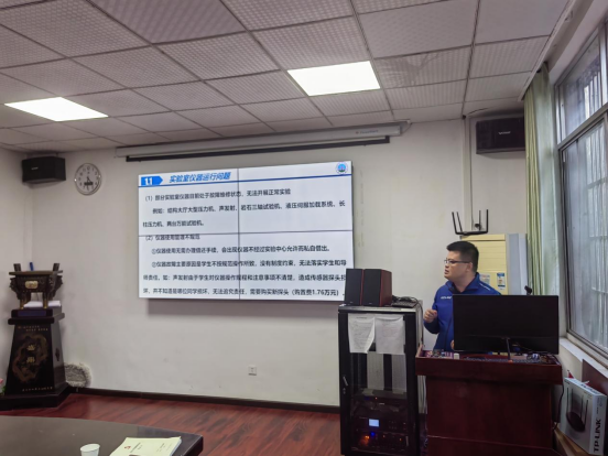 实验中心主任折海成就如何优化实验区域、危化学品单房存储、精密仪器养护等问题提出解决思路。通过规范化操作、标准化管理、流程化制度来提高实验仪器利用效率,降低实验仪器维修成本,为师生创造高效便捷的科研环境。