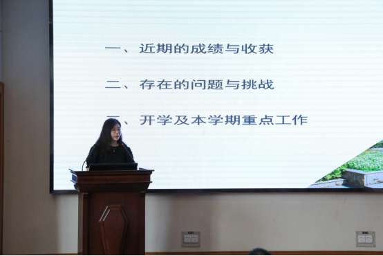 学院党委副书记周洁如以“奔跑向未来,携手争荣光”为主题,围绕学生工作成绩、先进典型、开学返校迎新、学风建设、第二课堂活动、创新创业等工作做出总结规划。