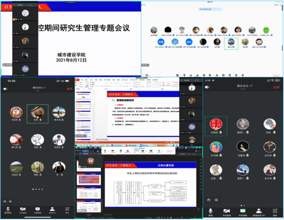 会后,各班级利用腾讯会议,在辅导员、班主任、研究生导师的带领下,邀请家长和学生一起召开了“疫情防控专题班会”。会上,各班主任、研究生导师抓住学校和学院工作重点及学生、家长关心的问题,进行了逐一讲解,班会布置了暑假期间学生管理、开学前准备等方面工作。最后,通过线上互动的形式,部分学生讲述了疫情期间发生的故事,班会在和谐愉快的氛围中结束。