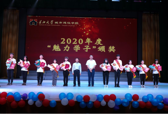 随后,颁奖晚会正式拉开帷幕。晚会由“奔涌后浪”、“辉煌中国”、“民心向党”和“使命青春”四个篇章构成。晚会中,颁奖盛典和毕业文艺演出穿插进行。颁奖典礼中,朱业宏及学校各部门负责人依次对学院的23名魅力学子、14个魅力寝室、7个魅力班级以及3位魅力教师进行了颁奖表彰。文艺演出环节,学院艺术团带来的乐队表演激情开场,舞蹈《在水一方》古风翩跹、温情婉转;朗诵与合唱《奔涌吧!后浪》声情并茂、铿锵有力。第二篇章,大一辅导员刘安琪老师带来的歌伴舞《灯火里的中国》舞姿优美、歌声悠扬,充满爱国情愫;乐器合奏《暗香》和街舞《蓝色超能力》魅力四射、精彩纷呈。“民心向党”篇章,藏族学生带来的舞蹈《情满草原》气场十足、淳朴厚重,展现了民族团结之美;舞台剧《向英雄致敬》讴歌了党带领人民抗击疫情的伟大胜利;说唱节目《飘向北方》赢得现场阵阵喝彩。学院沈俊廷老师带来的俄语歌曲《共青团员之歌》充满魅力,用歌曲诠释了“使命青春”;特别是学院全体辅导员老师带来的《学工DISCO》将晚会氛围引向高潮,掌声、欢呼声接连不断。最后,毕业晚会特别节目《昨日青空》温暖动情,重现了城建学子在长大求学的一幕幕画面,也用歌声给全体2021届毕业生送上了美好祝愿。