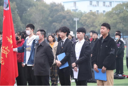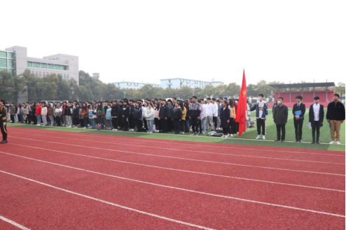 西校区田径场庄严地举行了升国旗仪式。学院党委副书记周俊老师﹑年级辅导员刘安琪及色色视频