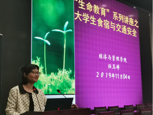 的“禁酒令”。之后,任玉婷对学生宿舍的防火、防盗、上下床铺防摔伤等细节进行了案例解析。最后,她对大学生文明使用共享单车、过马路拒绝“低头族”、拒绝打黑车等交通安全进行了讲解,引起同学们的深刻反思。