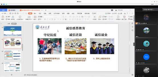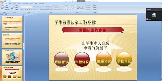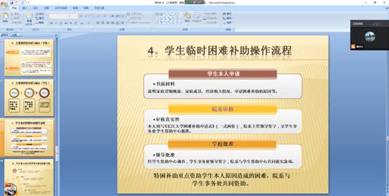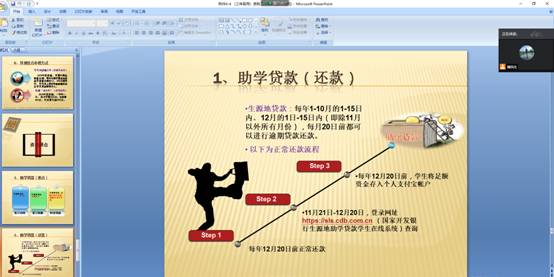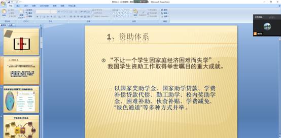 的资助育人体系、资助政策、资助流程以及生源地贷款办理中的注意事项。学校是学生的港湾,在学生家庭经济遇到困难时,学校会伸出援助之手,尽力所能及的力量帮助学生渡过难关。学生要清楚学校的资助政策、项目、类别和途径,这样才能有效地达到精准资助的效果,让每一位家庭经济困难的学生都感受到学校的温暖。