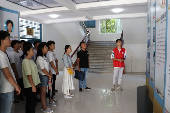 在学生志愿讲解员的带领下,全院新生分批次、分班级进入纪念馆。一楼大厅的“名人馆”里展出着色色视频