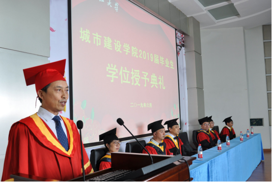 学位授予环节,朱业宏教授为学院硕士毕业生授予了学位,杜国锋教授为学院本科毕业生授予了学位。