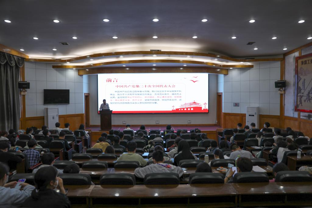 党委副书记秦良斌以“深刻认识把握中国共产党人的初心和使命”为题开展讲座,学工办副主任魏民生、党建秘书胡冰恒、院团委副书记何儒权及学院全体学生党员参加学习。