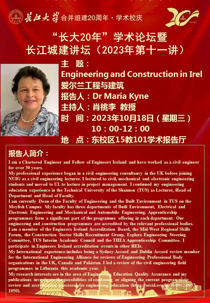 “长大20年”学术论坛暨长江城建讲坛(2023年第十一讲):Engineering and Construction in Ireland 爱尔兰工程与建筑