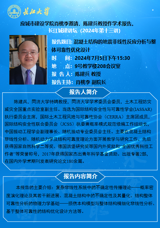 长江城建讲坛2024年第十三讲:混凝土结构的地震非线性反应分析与整体可靠性优化设计