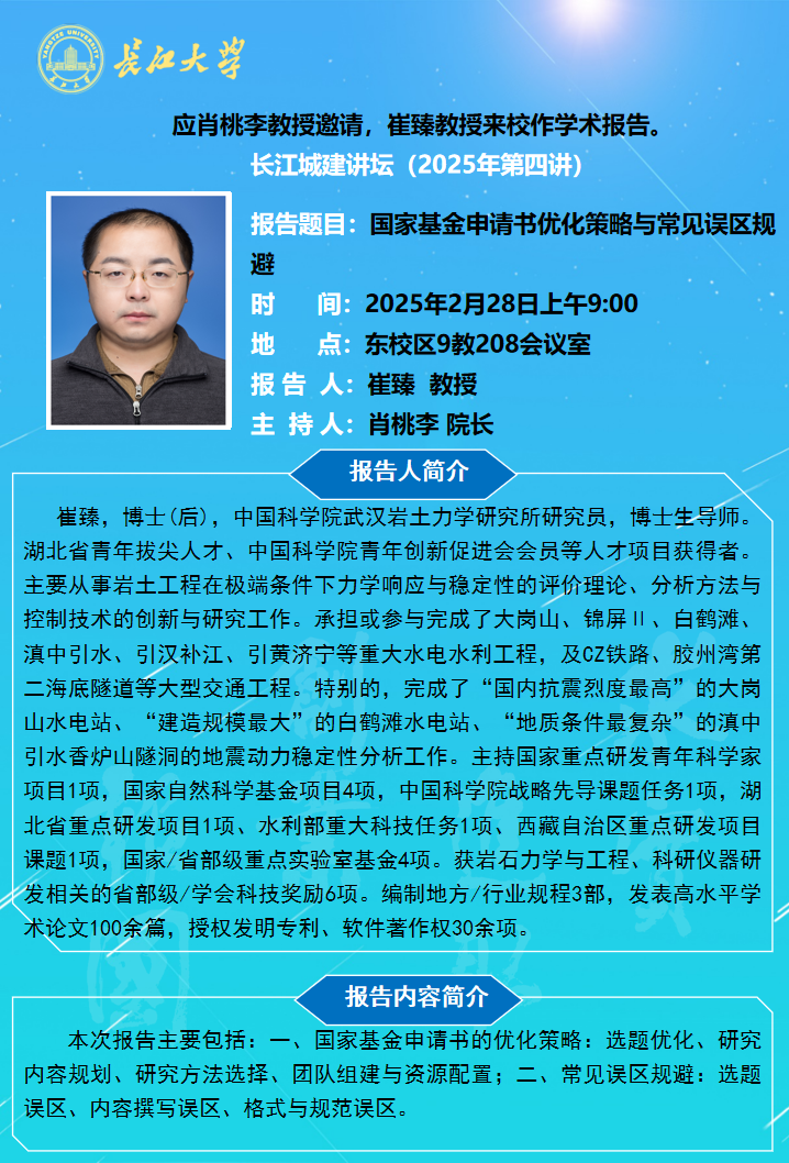 长江城建讲坛2025年第四讲:国家基金申请书优化策略与常见误区规避