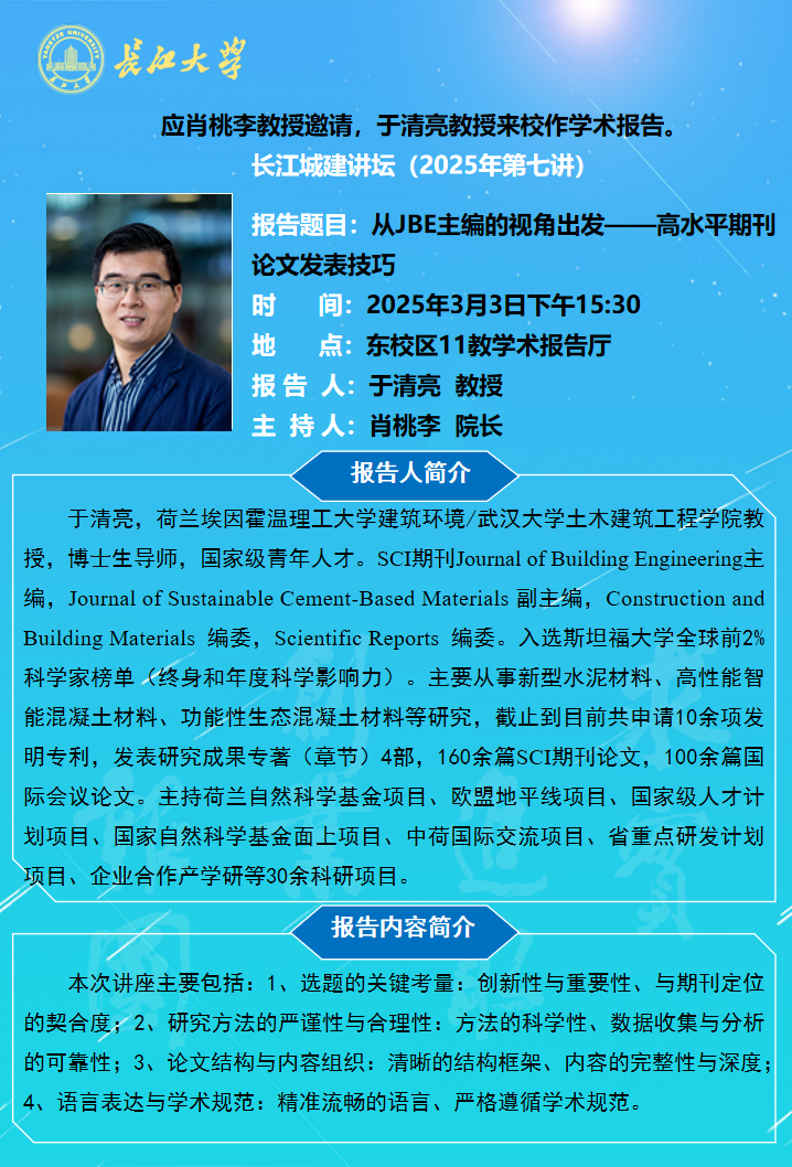 长江城建讲坛2025年第七讲:从JBE主编的视角出发——高水平期刊论文发表技巧