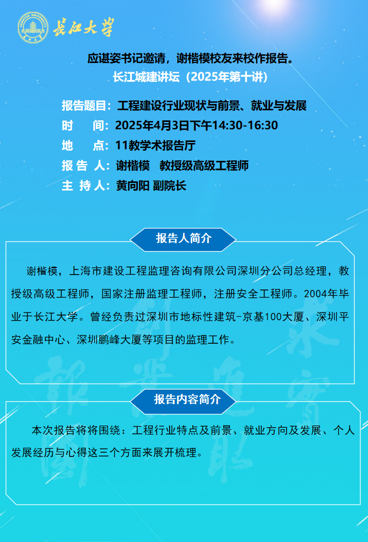 长江城建讲坛2025年第十讲:工程建设行业现状与前景、就业与发展