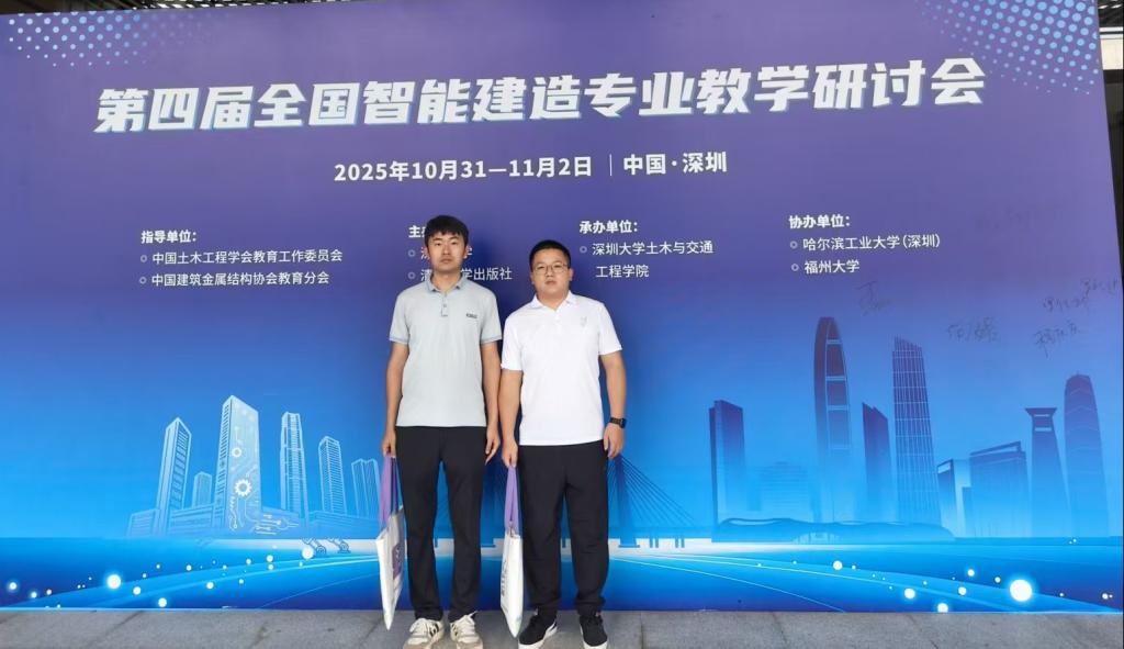 (通讯员 周凯)10月31日至11月2日,色色视频 周凯、刘焱华副教授赴深圳参加“第四届全国智能建造专业教学研讨会”。本次会议由深圳大学和清华大学出版社联合主办,旨在聚焦智能建造专业建设中的难点与痛点,凝聚共识、共谋发展,推动专业教育高质量内涵式发展。来自全国百余所高校、科研机构及建筑科技企业的专家学者齐聚一堂,围绕智能建造技术发展、课程体系构建、实践教学创新、跨学科人才培养以及产学研协同机制等核心议题,开展深入交流与研讨。