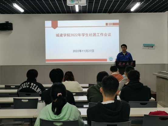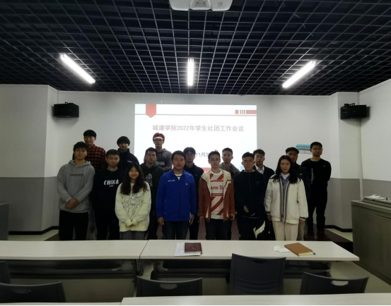 学生社团工作会议在22栋124会议室召开,院团委副书记何儒权、兼职辅导员吴天宇,院团委社团部成员,校级学生社团建筑模型协会以及结构设计协会、BIM研学会、节能减排协会、大学生艺术团、退役士兵之家等院级社团负责人参加会议。