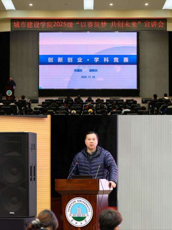 在西校区农科大楼1058报告厅举办“以赛筑梦,共创未来”主题宣讲会。学院副院长朱国庆、党委副书记周洁如、“挑战杯”指导老师刘流、全国大学生结构设计竞赛指导老师黄德文、优秀学生代表以及2025级全体学生参加此次会议。