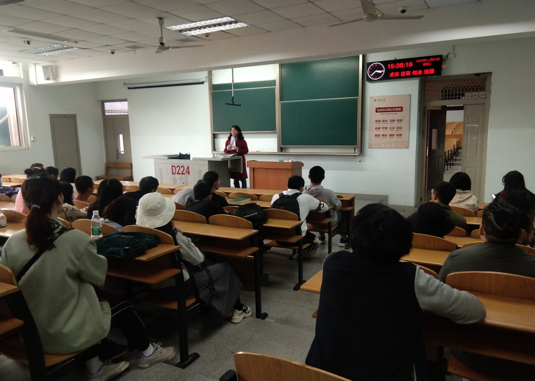 负责就业工作的胡冰恒老师在13教D224召集自己所带的两个毕业班级建筑11701、11702班召开“就业经验交流”主题班会。