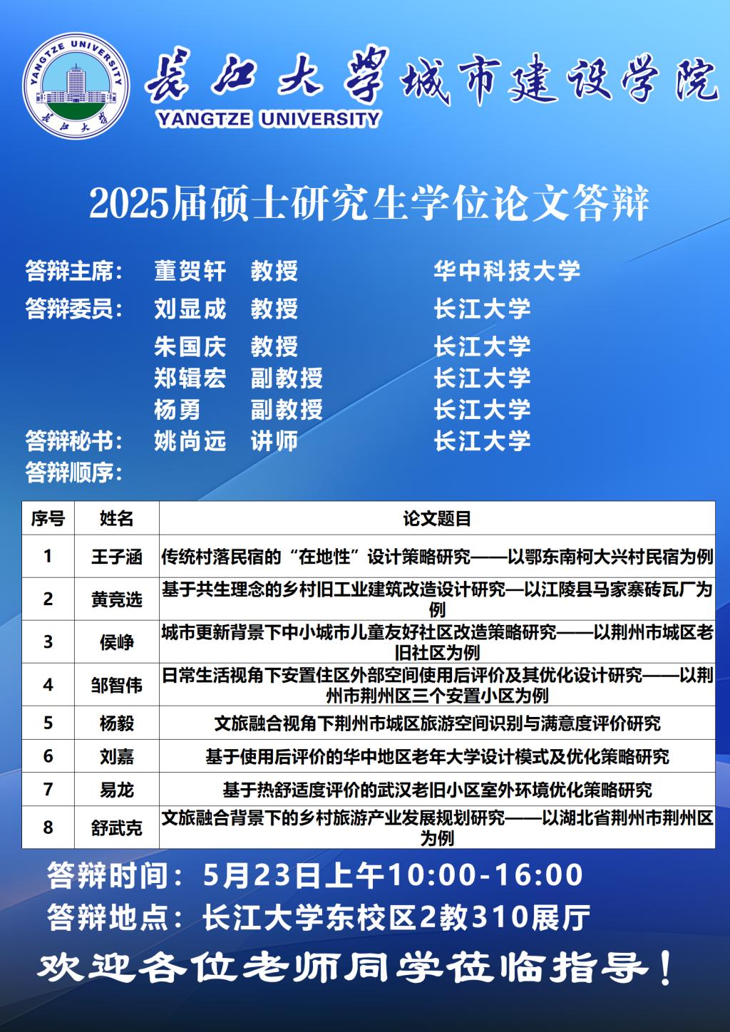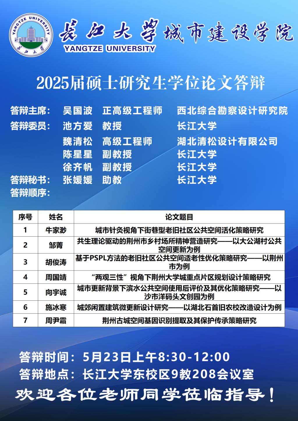 色色视频 2025届硕士研究生学位论文答辩公告(九)