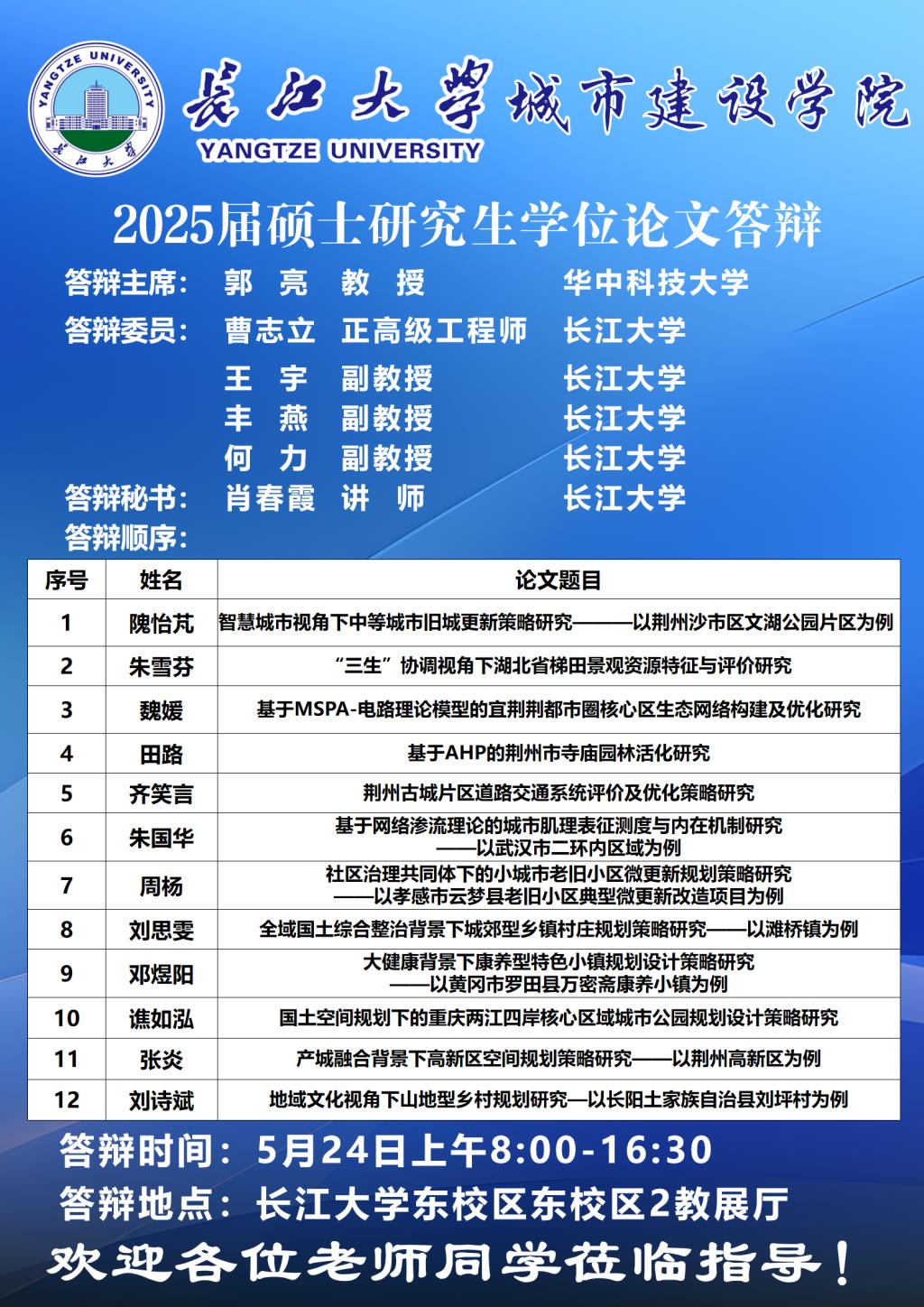 色色视频 2025届硕士研究生学位论文答辩公告(十)