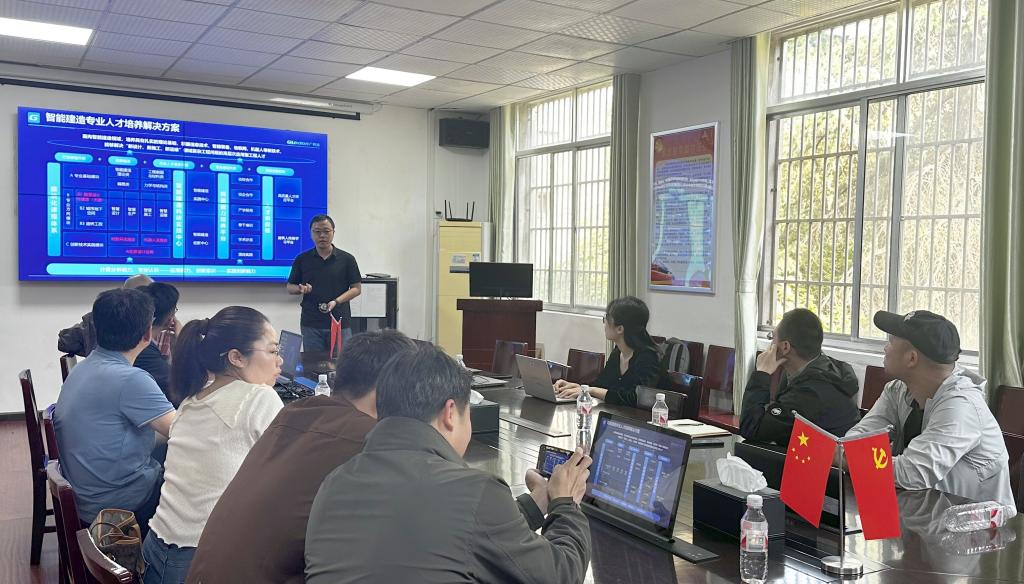 培训期间,孙瑞志围绕智能建造本科教学解决方案展开深入讲解。鉴于建筑行业数字化升级的迫切需求,孙瑞志系统阐述了智能建造人才培养的创新模式。在行业人才培养方式上,强调基于产教融合,积极探讨校企协同育人机制;课程体系设计方面,详细解析了智能建造核心课程与跨学科资源整合路径;实践中心建设板块,分享了虚实结合的实验平台搭建与教学应用案例;此外,还通过剖析高校智能建造专业建设的标杆经验,为学院的专业建设提供了宝贵借鉴。