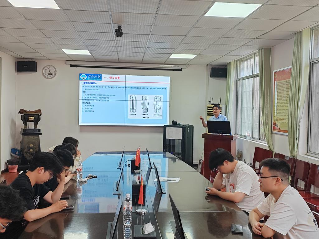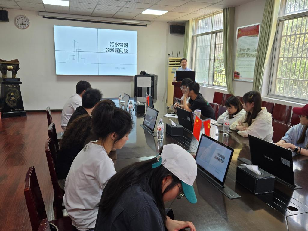 硕士生导师杨学祥教授率先登台,作题为“污水管网的运行及存在问题”的分享。本次报告主要包括研究意义、管网设计施工现状、渗漏鉴别与修复、研究现状、尚需研究解决的问题等几个方面。